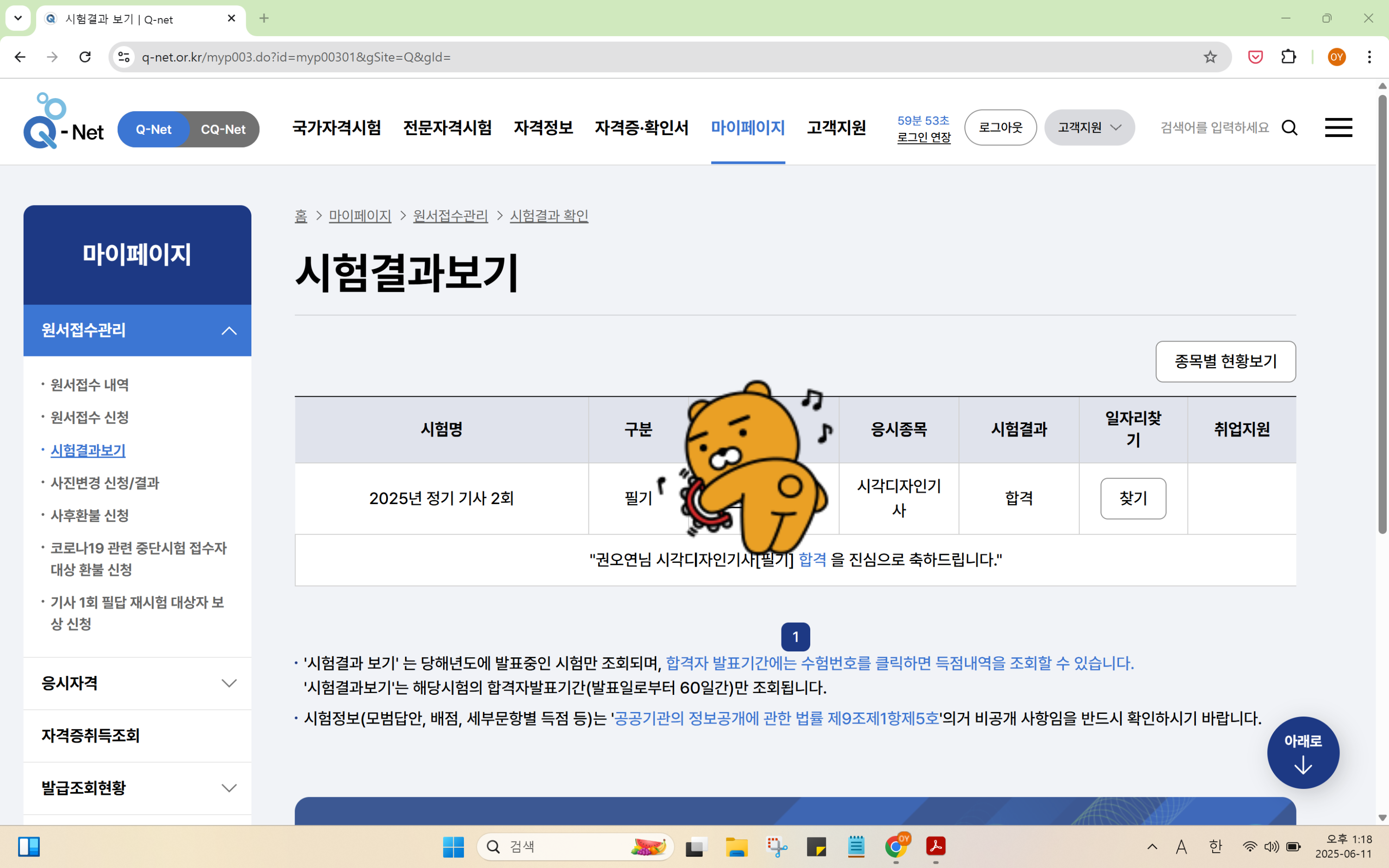 컬러리스트, GTQ 등등 디자인 자격증은 여러가지였지만, 나는 고민 끝에 시각디자인 기사를 선택했다. 그 이유는 이 시험이 다른 시험들보다 내 전공과 제일 잘 맞고 독학으로 혼자서 충분히 준비할 수 있을 것 같아 보였기 때문이다. 시험 종목을 정한 후에는 원래는 산업기사를 보려고 했으나, 주변 디자이너 선배님들이 기왕 보는거 연차도 있으니 두번 보지 말고 기사에 바로 도전해 보라는 조언을 해주셔서 약간의 부담감과 설렘을 안고 기사로 시험을 접수하려고 했다. 이때가 24년도 6월쯤이라 이미 필기 시험은 끝난 상태였다!! 그래서 거의 1년을 기다려 올해 처음으로 응시했다. 솔직히 작년 6월에 의기양양하게 접수를 하려고 사이트를 열었는데, 시험이 이미 끝난 상태여서 '시험을 꼭 봐야하나?' 란 생각이 잠깐 들었었다. 하지만 이 자격증 하나도 없이 살기엔 그것도 불안해서 얌전히 25년도 기사 시험 접수가 뜰 때 까지 기다렸다.